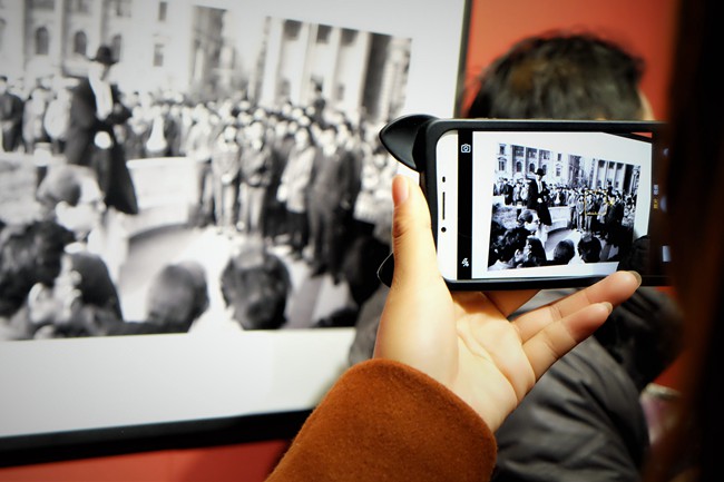 圖為參觀中,中國冶金報社的編輯、記者們不時地用手機記錄下攝影展上一幅幅優秀的新聞攝影作品。