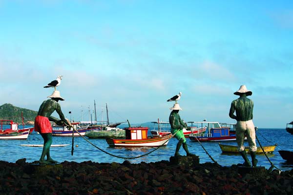 2015年8月2日,海鷗站在裏約熱內盧海港邊的漁民雕像上歇腳。(作者:蔡鴻賢)
