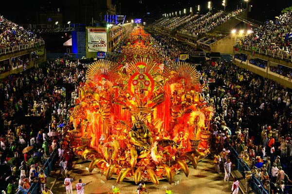 2008年2月4日,裏約熱內盧狂歡節上色彩斑瀾的花車遊行隊伍。(作者:張傳奇)