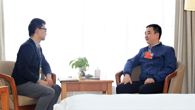 圖為謝生瑞正在接受中國冶金報社專訪。 (本報兩會報道組記者 顧學超 攝)