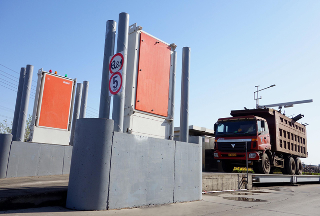 4月4日,河鋼唐鋼物流公司廢鋼商貿庫準備入庫的車輛正在接受輻射檢測儀檢測(如圖)。今年以來,隨著國家對輻射環境監測的監管力度持續加大,該公司進一步強化廢鋼進廠、出廠輻射監測工作,相繼安裝兩台廢鋼輻射檢測係統,全方位實時監測放射源,通過多角度、多層麵嚴把廢鋼輻射安全值,保證了廢鋼使用過程的安全性,大幅提高了工作效率。(特約通訊員 劉會軍 通訊員 許長霞 攝)