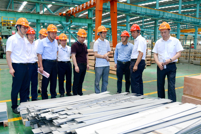 圖二參加發貨儀式的領導在參觀大明鈑金加工車間。(楊木軍攝影報道)