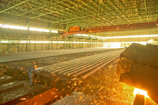 金秋十月是收獲的季節,更是生產的黃金季節。“十一”國(guo)慶(qing)節(jie)長(chang)假(jia)期(qi)間(jian),鞍(an)鋼(gang)集(ji)團(tuan)攀(pan)鋼(gang)廣(guang)大(da)一(yi)線(xian)幹(gan)部(bu)職(zhi)工(gong)堅(jian)守(shou)崗(gang)位(wei),爭(zheng)分(fen)奪(duo)秒(miao),以(yi)飽(bao)滿(man)的(de)精(jing)神(shen)狀(zhuang)態(tai)和(he)工(gong)作(zuo)熱(re)情(qing)奮(fen)戰(zhan)在(zai)生(sheng)產(chan)一(yi)線(xian),以(yi)優(you)異(yi)的(de)業(ye)績(ji)向(xiang)祖(zu)國(guo)母(mu)親(qin)69周年華誕獻禮。圖為10月3日,攀鋼軌梁廠緊張有序的生產場景。(梁建偉 攝)