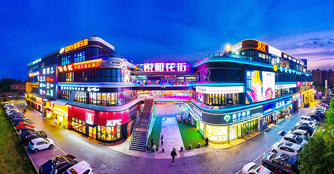 5月16日,航拍夜色下的山東省青島市山鋼產城自主運營的商業體悅和花街(如圖)。該項目集餐飲美食、休閑娛樂、生活配套、網紅潮流於一體,是青島市西海岸古鎮口核心區的“網 紅”打卡地。目前入駐的商戶近百家,招商率達100%。今年“五一”假期共吸引遊客6萬餘人次,實現銷售收入230餘萬元。今年初以來,山鋼產城積極布局綜合物業管理、多元商業運營、產業園區管理等領域。山鋼產城前4個月“非房”業務收入同比增長15.1%。(顏永健/文 特約通訊員 李建輝/攝)