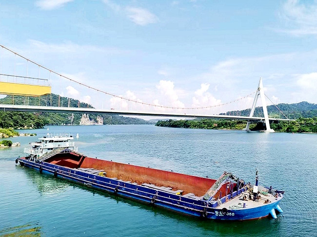 10月3日,柳鋼集團正式啟動鷓鴣江碼頭“江海貫通” 出口發貨業務,為柳鋼拓展海外市場,為桂中地區深度融入粵港澳大灣區保障區域產業鏈、供應鏈穩定暢通打開了新局麵。據悉,該通道以柳江鷓鴣江碼頭為起點,經西江流域直抵出海口後銜接海運,相較傳統“鐵路+公路+海運”的模式,可有效降低綜合物流成本,同時規避陸路運輸擁堵對交付的影響。截至10月9日,已有10艘滿載柳鋼出口鋼材的貨輪從鷓鴣江碼頭順利啟航,累計發運量達4.3萬噸。圖為載運柳鋼產品的船舶從鷓鴣江碼頭離港。(王聖霞/文 吳宏雅/攝)