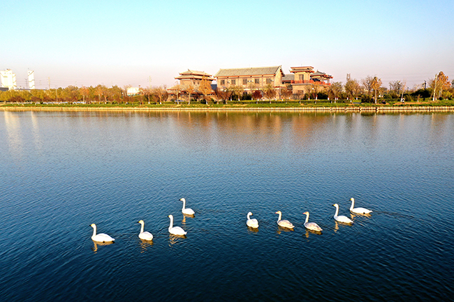 11月21日,一群潔白的天鵝如期飛臨晉南鋼鐵集團太子湖,在碧綠湖麵舒展羽翼、嬉戲遊弋,為這座綠色鋼城增添了靈動生機(如圖)。每年此時,天鵝如約而至,成為晉南鋼鐵集團綠色發展成效最直觀的“生態答卷”。(鄒瑩/文 特約通訊員 丁衛國/攝)