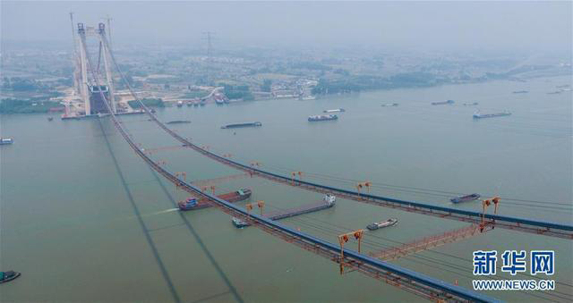 五峰山長江大橋是我國第一座公鐵兩用懸索橋,也是世界上荷載最重、行車速度最快的公鐵兩用懸索橋,被業內專家讚譽為“高速鐵路時代橋梁千米跨越的代表”。整個大橋上部結構施工尤為關鍵,全橋設計2根主纜,上下遊各一根,直徑1.3米。每根主纜有352根索股,每根索股由127根直徑5.5毫米、抗拉強度1860兆帕的鍍鋅鋁高強度鋼絲組成,單根主纜的拉力高達9萬噸,足以吊起1.5艘滿載的“遼寧號”航空母艦。