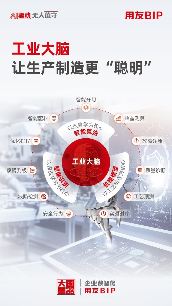 立足35年服務超290萬工業企業的經驗積澱,用友BIP工業大腦在行業應用場景和工業機理模型的基礎上,深度融入圖像識別與機器學習等技術 ,自主研發了“廢鋼判級”“智能配料”“優化排程”等300餘個工業模型,將AI技(ji)術(shu)與(yu)業(ye)務(wu)場(chang)景(jing)融(rong)合(he),挖(wa)掘(jue)工(gong)業(ye)大(da)數(shu)據(ju)價(jia)值(zhi),讓(rang)生(sheng)產(chan)更(geng)簡(jian)單(dan),質(zhi)量(liang)更(geng)穩(wen)定(ding),成(cheng)本(ben)更(geng)低(di)廉(lian),決(jue)策(ce)更(geng)科(ke)學(xue),加(jia)速(su)普(pu)及(ji)工(gong)業(ye)智(zhi)能(neng)在(zai)製(zhi)造(zao)業(ye)的(de)全(quan)麵(mian)應(ying)用(yong)。