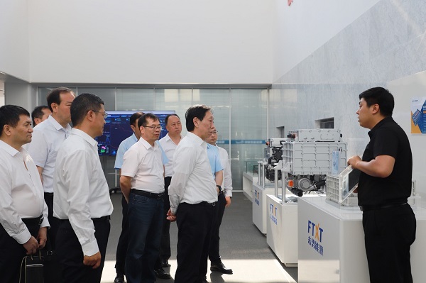 交流期間,於勇董事長一行應邀參觀未勢能源氫能產業園,未勢能源董事長張天羽現場接待,並重點介紹公司在氫能及燃料電池領域的戰略布局、產業結構與創新實踐成果,雙方團隊圍繞氫能產業落地、氫能示範城市群推廣及商業合作模式等展開深入座談。