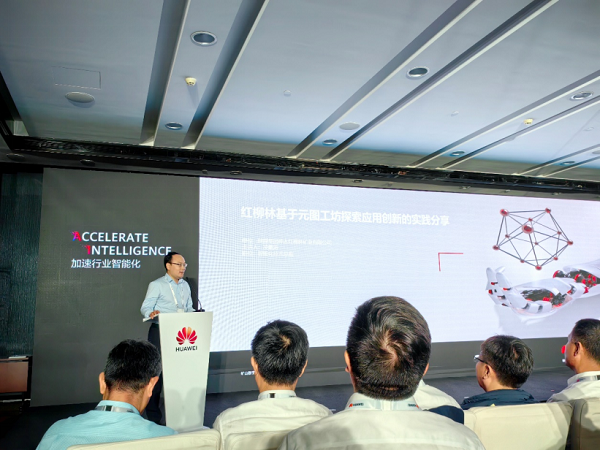 陝煤集團神木紅柳林礦業有限公司智能化技術總監淩鵬濤在會上分享了紅柳林基於元圖工坊探索應用創新的實踐成果。
