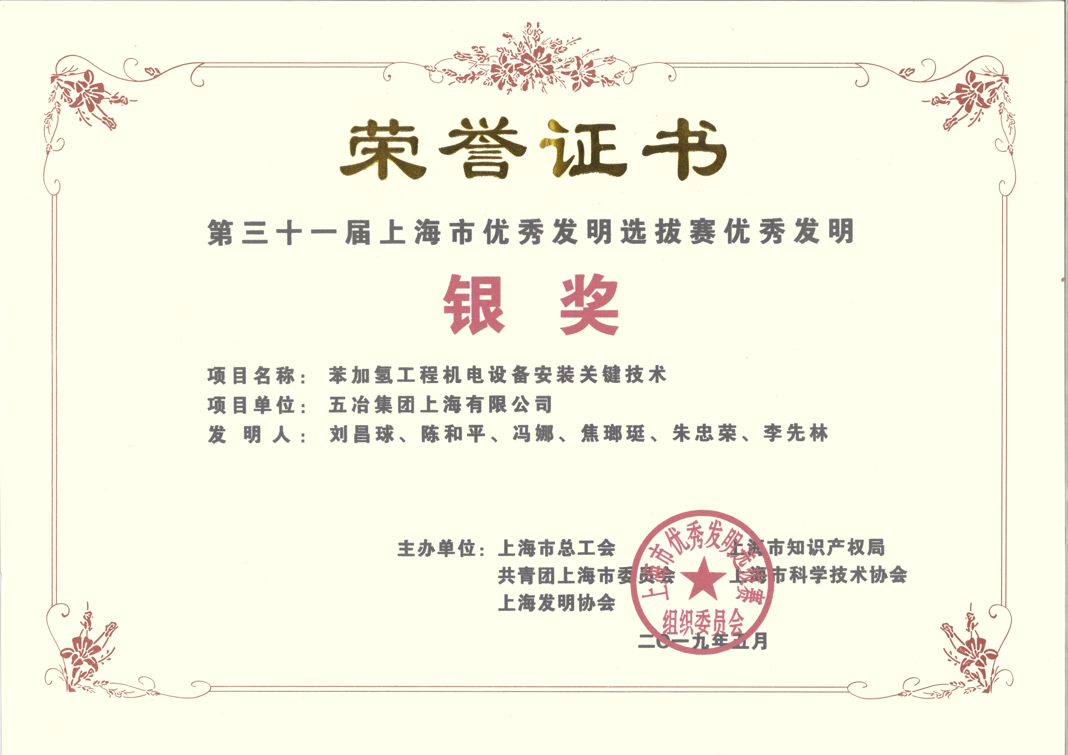 中國五冶集團工程總承包公司2個發明項目榮獲上海市優秀發明選拔賽銀獎