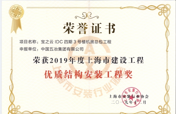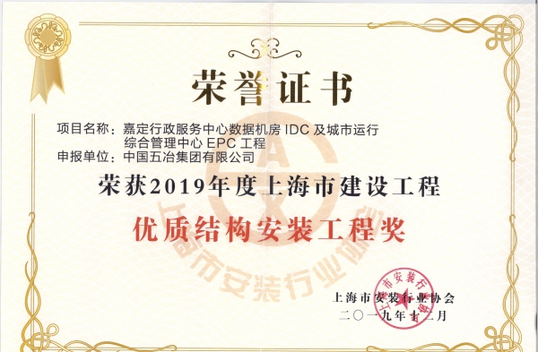 中國五冶兩項目榮獲“2019年度上海市建設工程優質結構安裝工程”稱號