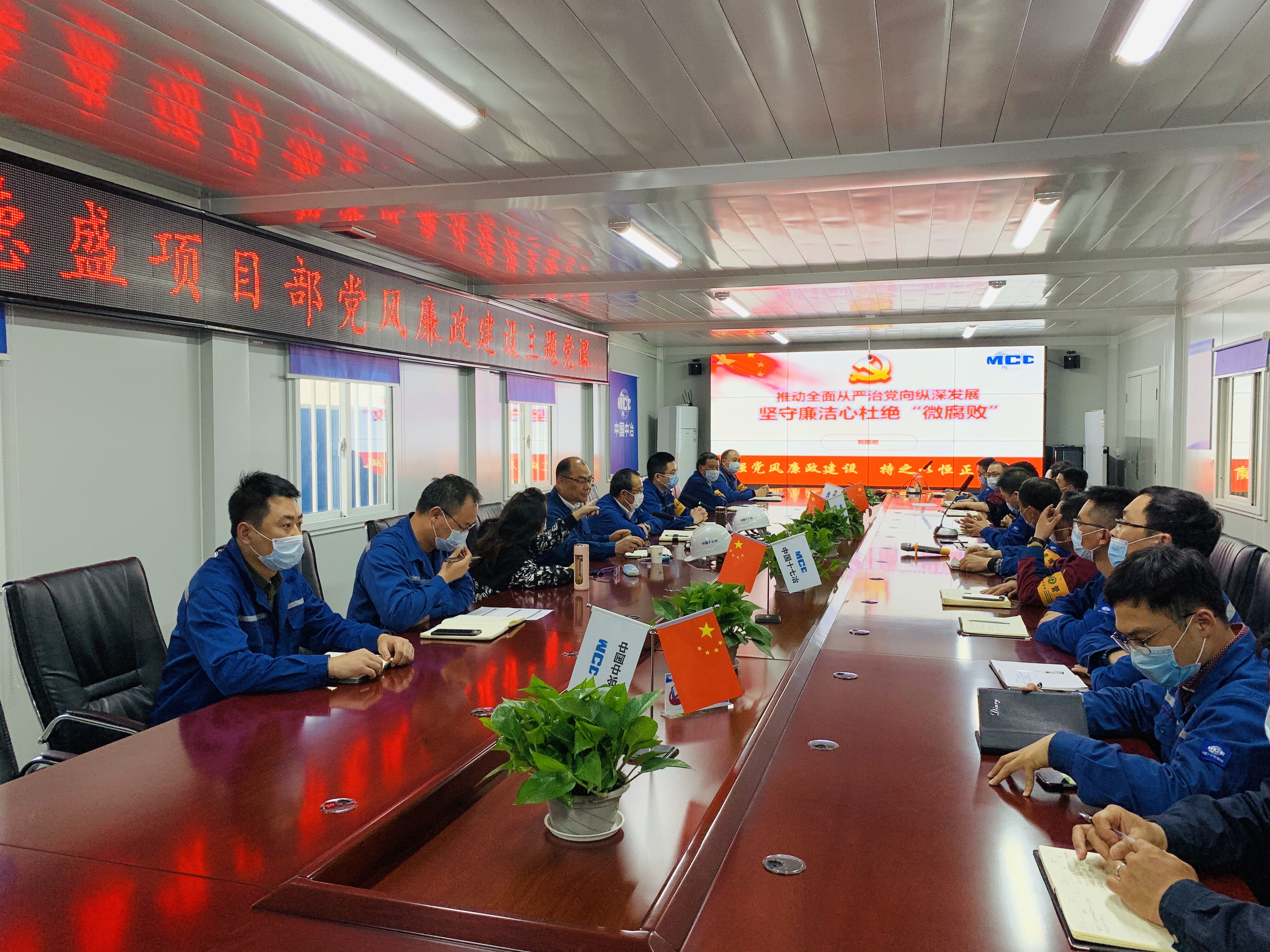 在會議室,公司紀委書記韓斯明首先結合有關違規違紀典型案例向項目部全體作了詳細講解;其次通過播放警示教育短片情景再現了貪汙犯罪所導致的嚴重後果,為項目部敲響了反腐倡廉的警鍾;最後,韓斯明書記通過圍繞公司“大幹一百天”競(jing)賽(sai)內(nei)容(rong)進(jin)一(yi)步(bu)要(yao)求(qiu)項(xiang)目(mu)部(bu)接(jie)下(xia)來(lai)要(yao)在(zai)做(zuo)好(hao)施(shi)工(gong)生(sheng)產(chan)工(gong)作(zuo)的(de)同(tong)時(shi)繼(ji)續(xu)加(jia)強(qiang)黨(dang)風(feng)廉(lian)政(zheng)建(jian)設(she),全(quan)力(li)以(yi)赴(fu)推(tui)進(jin)項(xiang)目(mu)高(gao)效(xiao)履(lv)約(yue),努(nu)力(li)跑(pao)出(chu)工(gong)程(cheng)建(jian)設(she)“加速度”。
