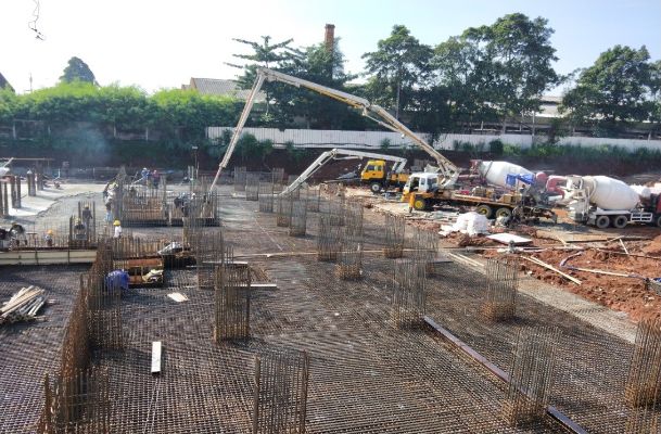 混凝土澆築麵積達1170平方米,澆築體積2100立方米。經過中國技術工人和印尼員工50個小時的連續奮戰,2020年5月10日晚10時,印尼雅加達新得利公寓樓項目地下室底板混凝土澆築順利完成。為項目在2020年7月31日±0.00層板按期施工提供了時間上的保證。