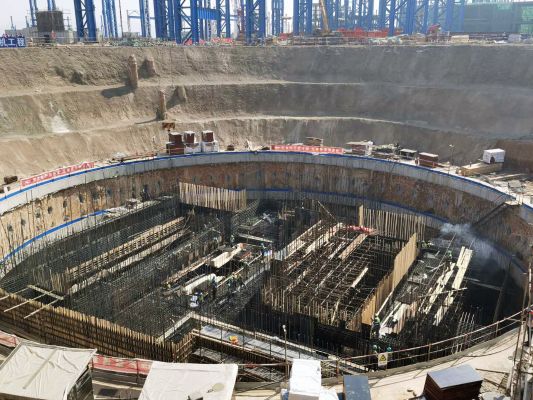 該項目是河鋼集團石鋼公司總投資102億元環保搬遷改造新基地項目中的關鍵項目,其中立式連鑄機主體工程擁有最大的大方坯連鑄機(澆注斷麵460毫米×610毫米)和建造深度最深的連鑄機(地上建築標高16.74米,地下最大土建施工深度42.55米)兩個世界之最。建成後的立式連鑄機將助力石鋼成為我國采用全短流程煉鋼的綠色化、智能化優特鋼示範企業。