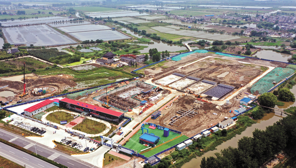 圖為興化市長江引水工程增壓泵站施工區域。 (記者陳明 攝)