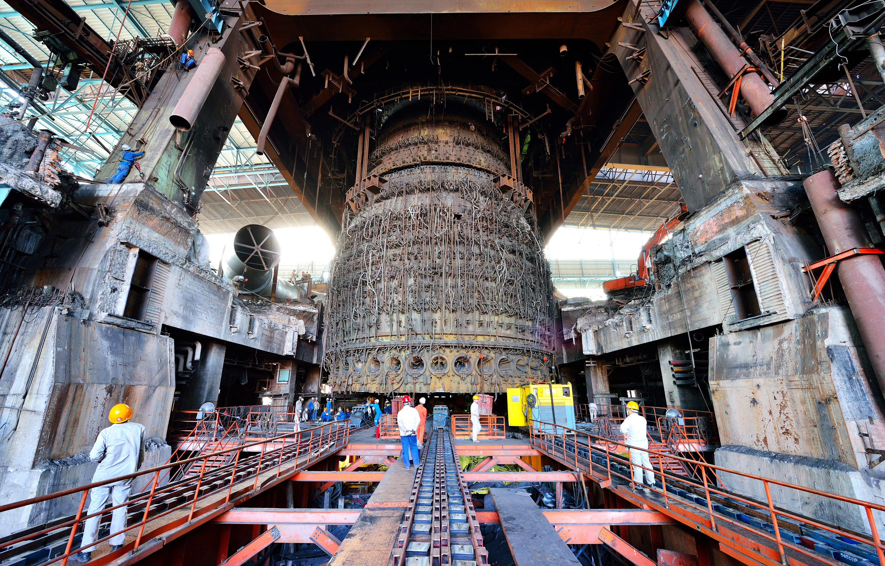 寶冶素有“高爐之王”的美譽,先後獲得包括國家科技進步特等獎在內的各類科技獎項20yuxiang。baoyejianchikejichuangxinyinling,tongguochongfenfahuizishendezhuanyejishuyoushi,shenrukaizhanjishugongguanhekejichuangxinshijian,buduantishengguoneitedaxinggaolujianzaoshuiping。zaigaolumokuaihuakuaisudaxiuguochengzhong,baoyechixujinxingjishugexin,daxinggaolumokuaihuadaxiuzonghejishudadaoleshijiexianjinshuiping,duocishuaxinleguoneitedaxinggaolukuaisudaxiugongqizuiduanjilu。mianduixinshiqixiagaolushigonghuanbao、安全的新要求,不斷研發綠色建造新技術、新工藝,形成了大型高爐大塊殘鐵繩鋸切割技術,解決了長期困擾高爐殘鐵傳統處理方法汙染嚴重、安全風險大的難題,受到了業主的高度讚譽;不進爐內冷卻壁更換技術、機器人自動噴塗技術的研發,避免了高爐檢修作業人員進入爐內更換冷卻壁的安全風險,先後在邯鋼、沙鋼、漣鋼等鋼鐵廠得以應用;將鋼結構的先進施工技術如液壓滑移、提升、預應力拉索等應用於冶金工業項目,實現了原料場在線封閉改造,為國家工業環保綠色發展貢獻力量;zhenduilengzhabobantuilashisuanxijizu,tongguocaiyongyeyaxitongzaixianxunhuansuanxixinjishu,jiangchuantongyeyaxitongzaixianxunhuansuanxicaiyongdeyansuanpeizhirongyegaiweiyongningmengsuanpeizhirongye,jieshenglesuanxishijian,jianshaolehuanjingwuran;近年來,在冶金工程建設中積極推廣應用BIM、三維掃描、智慧工地等信息化手段,形成集成化管理信息係統整體解決方案,建立了冶金工程BIM技術標準及應用數據庫,改變了冶金工程傳統粗放的建造模式,提升了冶金工程智能化管理水平。