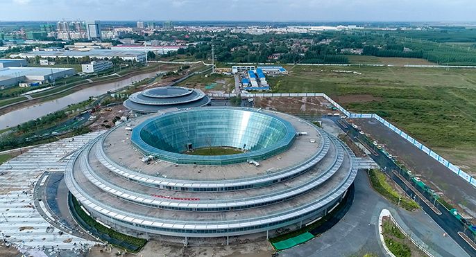 此項目位於河北省滄州市肅寧縣,項目總占地32248平方米,總建築麵積32919平方米,由兩個圓形建築組成。其中,主體建築地上四層,建築麵積27912平方米,多功能報告廳建築麵積5007平方米。項目建成後,將涵蓋電子商務交流平台、智能製造研發平台和會議會展商務平台等服務功能。作為2020年第八屆中國淘寶村高峰論壇的主會場,此項目的進度對協同園區和肅寧電商產業發展具有重要意義。