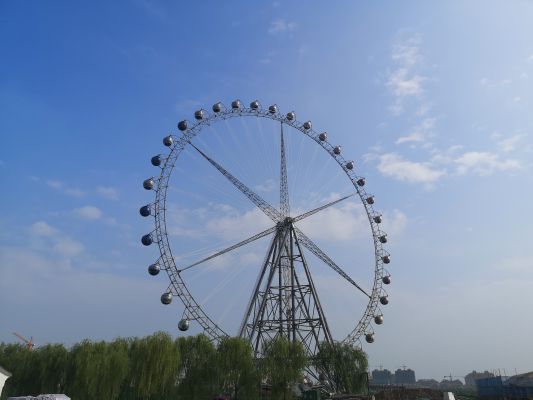 該設備位於山東省菏澤市文亭湖,整體高度為88米,轉盤直徑約為83米,配有36個直徑為2600mm的新式豪華球形吊艙和144根直徑為20mm的de高gao強qiang度du拉la索suo,配pei備bei豪hao華hua覆fu蓋gai式shi巨ju型xing燈deng飾shi方fang案an,結jie構gou新xin穎ying,安an全quan可ke靠kao,美mei麗li壯zhuang觀guan。通tong過guo使shi用yong新xin式shi球qiu形xing吊diao艙cang,燈deng光guang采cai用yong進jin口kou芯xin片pian豪hao華hua覆fu蓋gai式shi巨ju型xing燈deng飾shi以yi及ji無wu線xian遠yuan程cheng控kong製zhi技ji術shu等deng創chuang新xin方fang式shi,該gai設she備bei已yi成cheng為wei菏he澤ze市shi成cheng武wu縣xian地di標biao性xing建jian築zhu,是shi成cheng武wu縣xian重zhong點dian遊you樂le工gong程cheng。