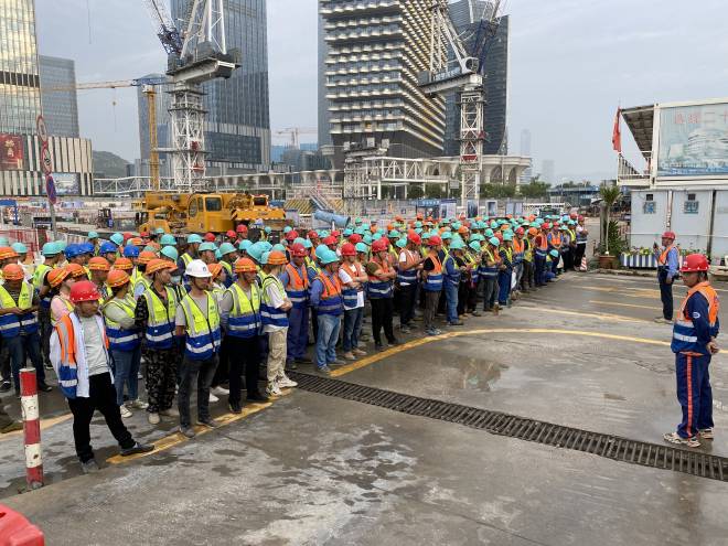 jiejiariqijian,gongrenmenqingxubodongda,bipingshigengrongyichuxianmabidayidexianxiang,jiazhijiariqijianguanlikenengcunzaixiedai,rongyichanshenganquanyinhuan。weixiaochuyinhuanbimiananquanshigudefasheng,zhuhaihengqinzongbudasha(二期)項目盡管在工期如此緊迫的情況下,堅決響應國家和廣東省地方政策,節日期間停掉現場正在施工的腳手架搭設、支撐梁拆除、鋼板牆吊裝等高危大工程作業。五月一日,項目安環部對施工現場所有作業人員再次進行安全教育,耐心的講解安全知識。注意防高墜、防火、防觸電。一遍再一遍的強調要正確穿戴安全帽、反光衣等勞防用品,假期期間切莫鬆懈,應該比平時更加提高警惕。宣貫後,安環部對整個施工現場進行了全方位安全隱患大排查。