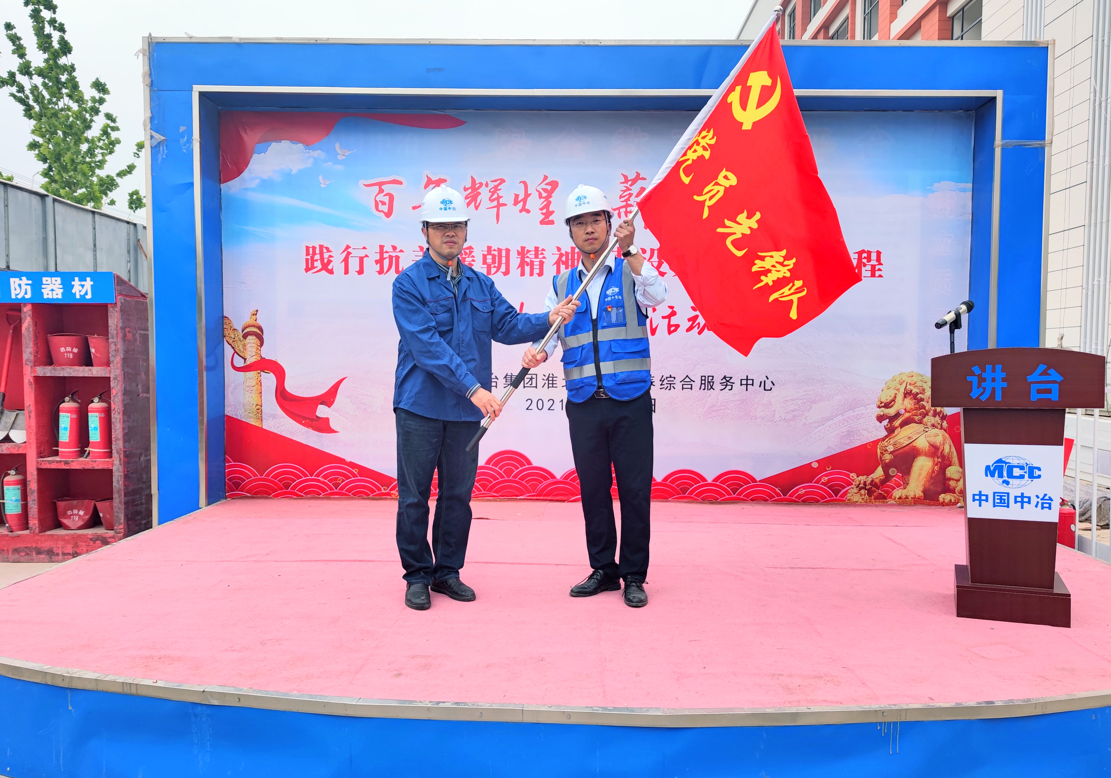 為將“抗美援朝精神”落在實處,黨支部在現場成立黨員先鋒隊並授旗。項目經理鄭重表態,quantirenyuanbidingfenlipinbo,zhenzhuashigan,bujinyaobaozhibaoliangdiwanchengrenwu,haiyaochongfenfahuidangzhibuzhandoubaoleizuoyonghedangyuanxianfengmofanzuoyong,quanlichongcigangongqi。十七冶市政分公司紀委書記羅東帶領全體黨員重溫入黨誓詞,牢記共產黨員的責任和使命,以更加飽滿的熱情投身各自的工作崗位,永葆共產黨員的政治本色,深入踐行“一天也不耽誤、一天也不懈怠”的中冶精神,保障康養項目早日完工交付使用。濉溪縣分公司黨支部書記要求全體黨員要鼓足幹勁,擰緊發條,不忘初心、牢(lao)記(ji)使(shi)命(ming),高(gao)標(biao)準(zhun)高(gao)質(zhi)量(liang)完(wan)成(cheng)黨(dang)員(yuan)先(xian)鋒(feng)隊(dui)的(de)工(gong)作(zuo)任(ren)務(wu),以(yi)圓(yuan)滿(man)完(wan)成(cheng)重(zhong)點(dian)任(ren)務(wu)的(de)實(shi)際(ji)行(xing)動(dong)和(he)工(gong)作(zuo)業(ye)績(ji)檢(jian)驗(yan)活(huo)動(dong)成(cheng)果(guo)。把(ba)淮(huai)北(bei)銀(yin)華(hua)康(kang)養(yang)綜(zong)合(he)服(fu)務(wu)中(zhong)心(xin)項(xiang)目(mu)打(da)造(zao)成(cheng)高(gao)標(biao)準(zhun)的(de)工(gong)程(cheng),把(ba)中(zhong)冶(ye)人(ren)“一天也不耽誤、一天也不懈怠”樸實厚重的企業精神紮根在這裏,賡續紅色精神、傳承紅色血脈,全麵展示“美好中冶”形象,建設人民滿意工程。