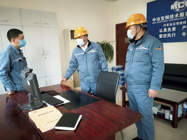 圖為中冶寶鋼有關領導正在檢查安全生產、防疫防護、後勤工作。