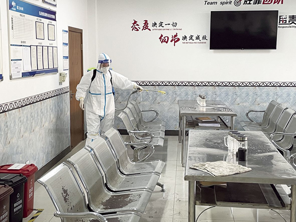圖為中冶寶鋼對工作、休息場所進行定期消殺。