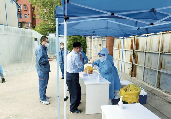 圖為中冶寶鋼項目部員工正在做核酸檢測。