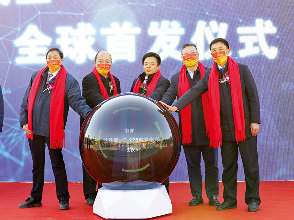 圖為在全球首發儀式上,與會領導和嘉賓共同啟動發車指令。(中冶寶鋼 供圖)