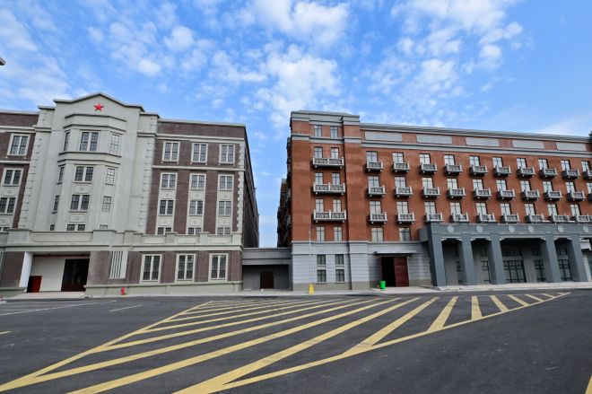灰色外城、紅色內牆和金色重簷,無論是秦王宮、明清宮苑,還是清明上河圖、廣州街、香xiang港gang街jie,橫heng店dian影ying視shi城cheng的de建jian築zhu都dou頗po具ju時shi代dai特te色se,體ti現xian著zhe建jian築zhu物wu的de氣qi勢shi非fei凡fan和he巧qiao奪duo天tian工gong。不bu同tong於yu普pu通tong的de樓lou房fang建jian築zhu,中zhong國guo五wu冶ye此ci次ci承cheng建jian的de攝she影ying棚peng結jie構gou形xing式shi獨du特te,結jie構gou線xian條tiao和he裝zhuang飾shi線xian條tiao數shu量liang多duo,對dui外wai牆qiang的de裝zhuang飾shi要yao求qiu嚴yan格ge。