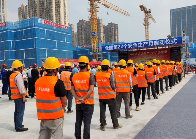 6月1日,中國五冶集團、安徽皖投置業公司在合肥雲啟錦上花園項目聯合舉辦“安全生產月”啟動儀式暨物體打擊應急救援演練活動。建設、施工、監理單位相關負責人及分包班組等近200人參加。