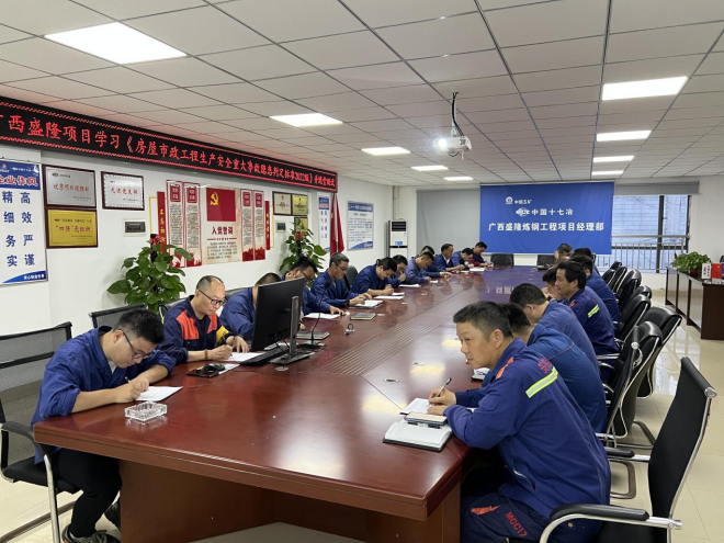 為深入貫徹落實習近平總書記關於安全生產工作的係列重要批示指示精神,紮實開展中國十七冶“安全管理強化年”、“安全生產月”等活動,6月6日,十七冶防城盛隆煉鋼項目組織所有管理人員參加《房屋市政工程生產安全重大事故隱患判定標準(2022版)》專題培訓學習會。