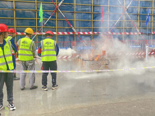 隨(sui)後(hou),項(xiang)目(mu)現(xian)場(chang)開(kai)展(zhan)了(le)消(xiao)防(fang)演(yan)練(lian)和(he)高(gao)處(chu)墜(zhui)落(luo)救(jiu)援(yuan)演(yan)練(lian)。演(yan)練(lian)首(shou)先(xian)模(mo)擬(ni)了(le)因(yin)工(gong)人(ren)操(cao)作(zuo)不(bu)當(dang)引(yin)發(fa)火(huo)災(zai),演(yan)練(lian)總(zong)指(zhi)揮(hui)接(jie)到(dao)管(guan)理(li)人(ren)員(yuan)的(de)火(huo)情(qing)報(bao)告(gao)後(hou)立(li)即(ji)啟(qi)動(dong)應(ying)急(ji)預(yu)案(an),組(zu)織(zhi)進(jin)行(xing)搶(qiang)險(xian)工(gong)作(zuo)。在(zai)警(jing)戒(jie)疏(shu)散(san)組(zu)、通訊組、搶險組以及後勤醫療組的密切配合下,“火勢”迅(xun)速(su)得(de)到(dao)控(kong)製(zhi),火(huo)情(qing)被(bei)及(ji)時(shi)消(xiao)除(chu)。與(yu)此(ci)同(tong)時(shi),由(you)於(yu)操(cao)作(zuo)失(shi)誤(wu),一(yi)名(ming)工(gong)人(ren)從(cong)高(gao)處(chu)意(yi)外(wai)墜(zhui)落(luo),現(xian)場(chang)管(guan)理(li)人(ren)員(yuan)了(le)解(jie)情(qing)況(kuang)後(hou)第(di)一(yi)時(shi)間(jian)上(shang)報(bao)事(shi)故(gu)情(qing)況(kuang)。接(jie)到(dao)事(shi)故(gu)報(bao)告(gao)後(hou),項(xiang)目(mu)部(bu)立(li)即(ji)展(zhan)開(kai)高(gao)處(chu)墜(zhui)落(luo)救(jiu)援(yuan)工(gong)作(zuo),第(di)一(yi)時(shi)間(jian)疏(shu)散(san)救(jiu)援(yuan)通(tong)道(dao),聯(lian)絡(luo)救(jiu)治(zhi)醫(yi)院(yuan),及(ji)時(shi)排(pai)除(chu)周(zhou)邊(bian)環(huan)境(jing)可(ke)能(neng)帶(dai)來(lai)的(de)二(er)次(ci)傷(shang)害(hai),並(bing)由(you)專(zhuan)業(ye)人(ren)員(yuan)進(jin)行(xing)初(chu)步(bu)救(jiu)治(zhi),最(zui)終(zhong)該(gai)名(ming)工(gong)人(ren)及(ji)時(shi)送(song)至(zhi)醫(yi)院(yuan)接(jie)受(shou)治(zhi)療(liao)。演(yan)練(lian)過(guo)程(cheng)對(dui)接(jie)順(shun)暢(chang)、有條不紊,達到了預期效果。