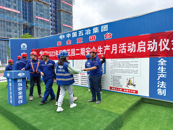 6月1日,中國五冶集團銀湖安置房項目部舉行了以“人人講安全,個個會應急”為主題的“安全生產月”活動啟動儀式。在啟動儀式上,該項目部安全管理人員傳達了公司2023年“安全生產月”活動方案,並對開展安全生產知識宣傳貫徹、重大事故隱患專項排查整治、應急演練活動、典型案例警示教育進行安排。隨後,該項目部管理人員與建設單位、代建單位、監理單位、協力單位管理人員在安全生產月宣傳橫幅上簽名並做出鄭重承諾。