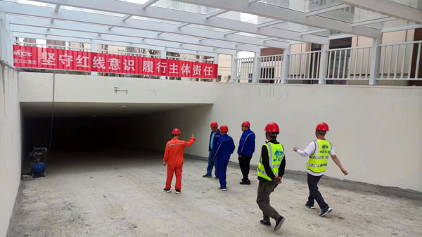 圖為中國五冶濟寧五裏營河北(一期)項目部在“安全生產月”期間進行安全排查。 (陳賓墨 攝)