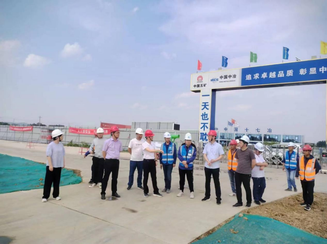 6月14日下午,安徽巢湖經濟開發區管委會副主任陳偉、合肥市建築質量安全監督站巢湖經開區分站王乾貴、anhuichaohujingjikaifaquchanyexinchengzhihuibulingdaoyixingdaozhongguoshiqiyejituanyejingongchengjishufengongsichengjiandegaoduanzhizaochanyeyuanerqixiangmushigongxianchangjianzhazhidaogongzuo。
