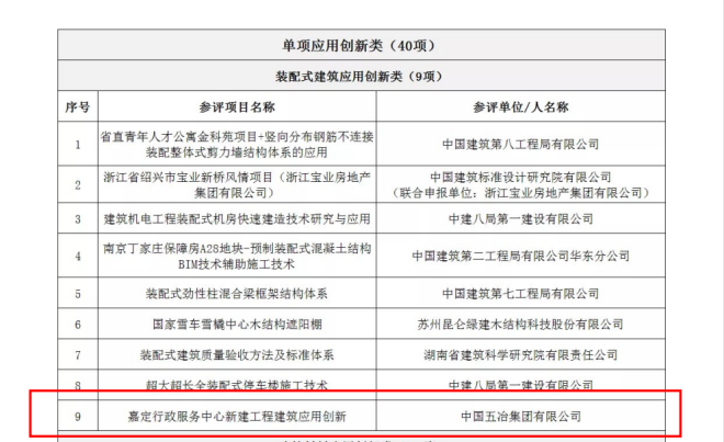 中國五冶嘉定行政服務中心新建工程榮獲“建築應用創新大獎”