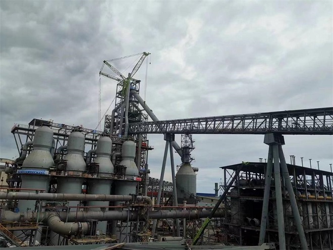 3號高爐主皮帶通廊全長175.5米,坡度較大,共分為三段進行安裝。本次吊裝的TL3段通廊寬4.9米,高5.752米,長51米,上端高度61米,下端高度54米,角度為9.8度,總重達85噸。吊裝期間,項目團隊製定了周密的方案,精心組織現場施工,合理配置人力、機械資源,科學謀劃場地利用,多次展開技術分析和實地推演,克服了場地局限給吊裝帶來的困難,精準控製吊裝精度,最終曆時4個小時成功實現主皮帶通廊全線貫通。