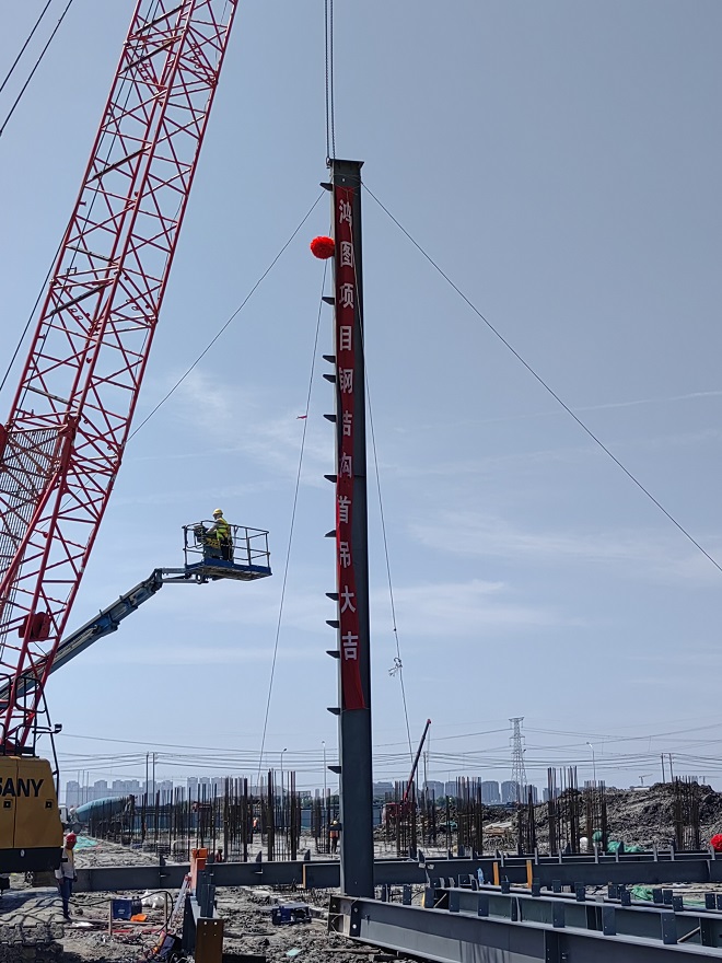 7月1日(ri),隨(sui)著(zhe)第(di)一(yi)根(gen)鋼(gang)結(jie)構(gou)柱(zhu)的(de)徐(xu)徐(xu)吊(diao)起(qi),中(zhong)國(guo)五(wu)冶(ye)集(ji)團(tuan)華(hua)北(bei)公(gong)司(si)承(cheng)建(jian)的(de)廣(guang)東(dong)鴻(hong)圖(tu)輕(qing)量(liang)化(hua)智(zhi)能(neng)製(zhi)造(zao)華(hua)北(bei)基(ji)地(di)一(yi)期(qi)項(xiang)目(mu)正(zheng)式(shi)進(jin)入(ru)廠(chang)房(fang)鋼(gang)結(jie)構(gou)吊(diao)裝(zhuang)施(shi)工(gong)階(jie)段(duan)。