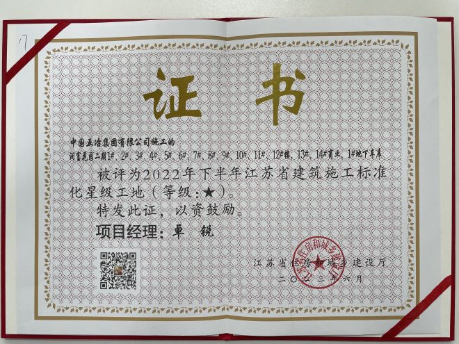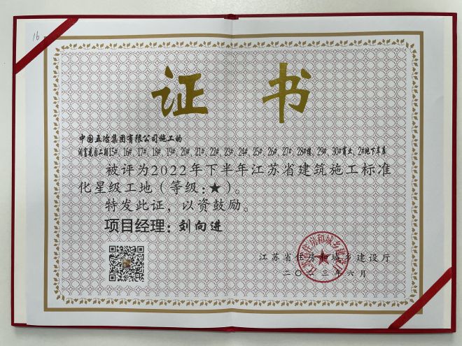 近日,中國五冶集團承建的鹽城大豐潤富花園二期安置房項目1#~14#樓、1#地下車庫工程和15#~30#樓、2#地下車庫工程榮獲江蘇省建築施工標準化星級工地稱號。