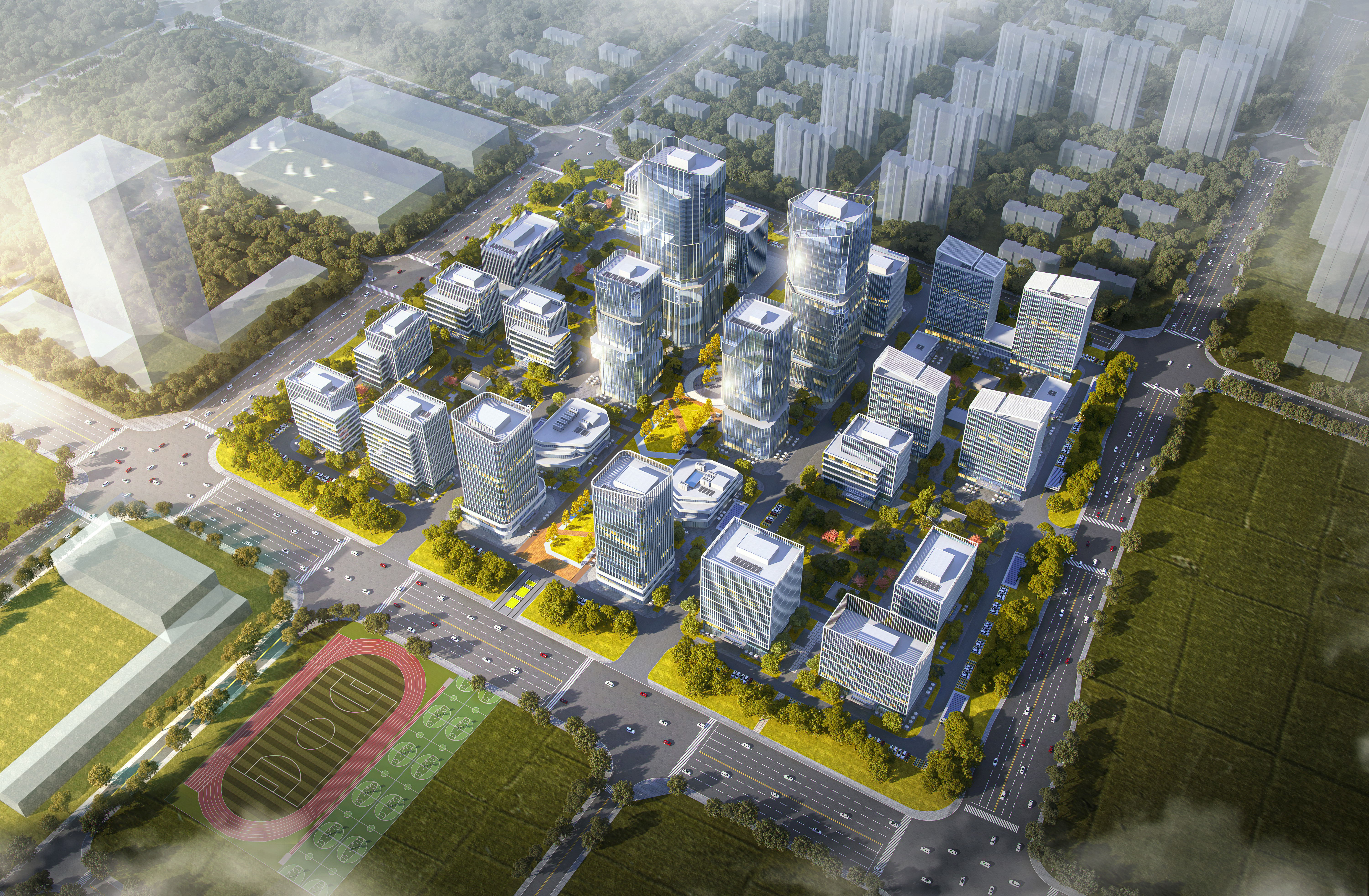 該項目共分三期開發建設,本次開工部分為項目一期,一期總建築麵積22.4萬平方米,其中地下總建築麵積5.4萬平方米,地上總建築麵積17萬平方米,建設內容主要包括辦公樓、人才公寓、商業用房等。