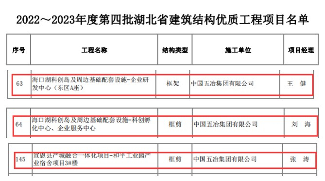 立足新起點,奮近“開門紅”。日前,中國五冶集團湖北省兩個項目喜獲佳獎。其中,黃石新港港產城融合發展綜合配套項目海口湖科創島及周邊基礎配套設施-企業研發中心(東區A座)和科創孵化中心、企業服務中心均榮獲2022-2023年度第四批“湖北省建築結構優質工程”;宣恩縣產城融合一體化項目-和平工業園產業宿舍項目榮獲2023-2024年度第二批“湖北省建築工程安全文明施工現場”,3號樓榮獲2022-2023年度第四批“湖北省建築結構優質工程”。