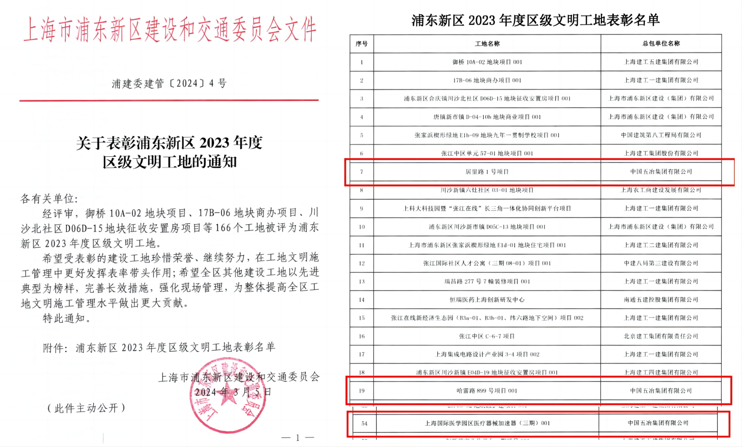 近日,上海市浦東新區建設和交通委員會公布了2023年度區級文明工地表彰名單,由中國五冶集團承建的張江片區居裏路1號項目、哈雷路899號項目、國際醫學園區醫療器械加速器三期項目紛獲“浦東新區2023年度區級文明工地”稱號。