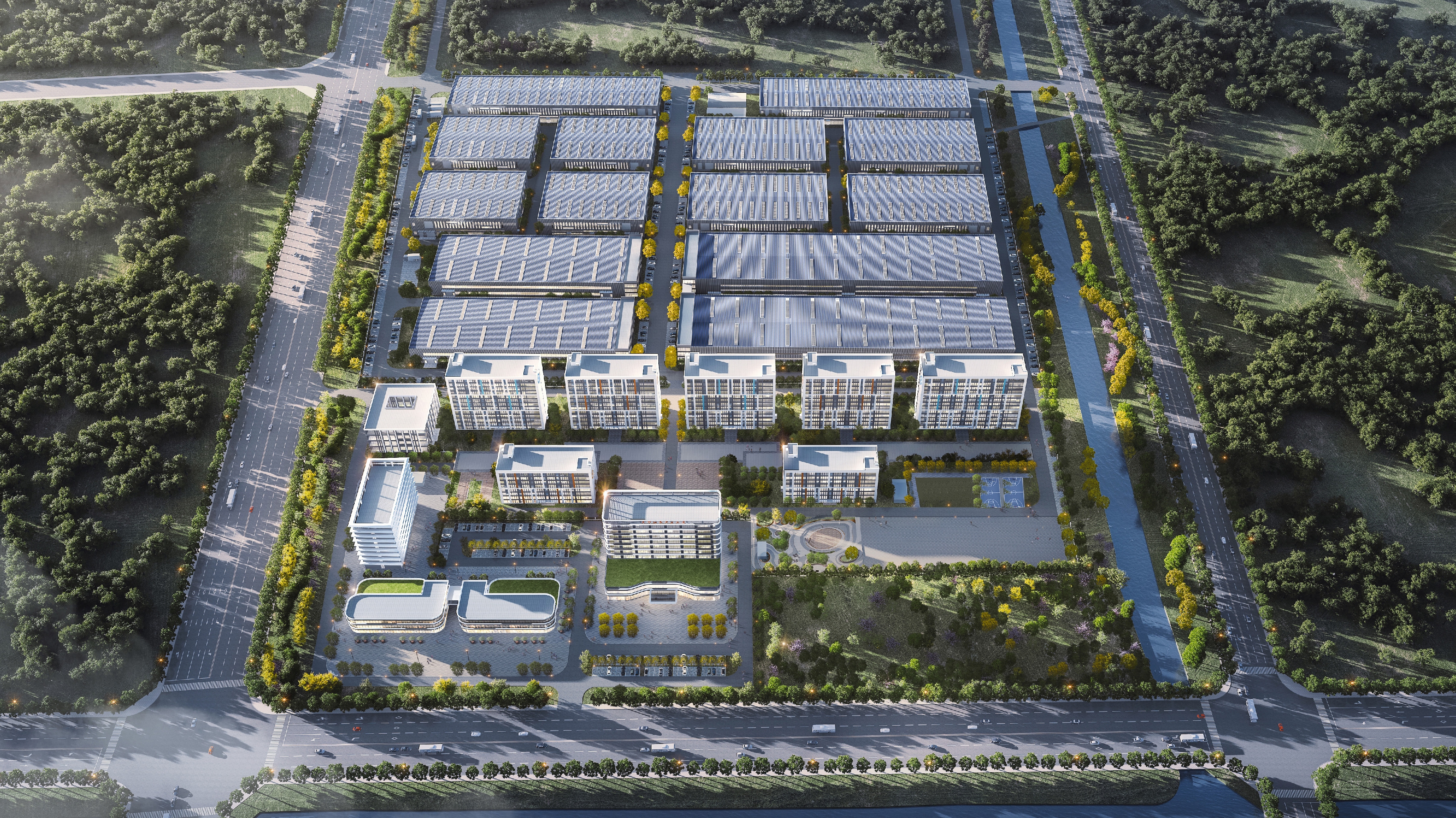 該項目位於安徽省宿州市靈璧縣,項目總建築麵積為221711平方米。其中A區主要由1-14號廠房、開閉所、公共站房組成,B區為商業及宿舍區,主要由7棟公寓樓、1棟食堂、1棟綜合樓、1棟酒店等組成。