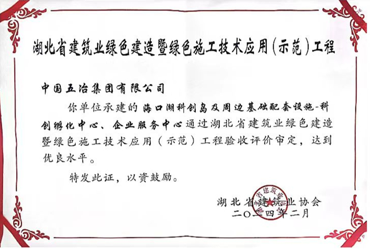 近日,由中國五冶集團承建的黃石新港港產城融合發展綜合配套項目海口湖科創島及周邊基礎配套設施-科創孵化中心、企業服務中心獲評“湖北省建築業綠色建造暨綠色施工技術應用(示範)工程”。這是繼榮獲2023-2024年度第一批湖北省建築工程安全文明施工現場、2023年度湖北省建築施工現場“六個工地”示範項目、2022-2023年度第四批“湖北省建築結構優質工程”和黃石市2023年度建設工程銅都杯結構優質工程、安全文明施工現場雙獎項後,科創孵化中心、企業服務中心斬獲的又一獎項。