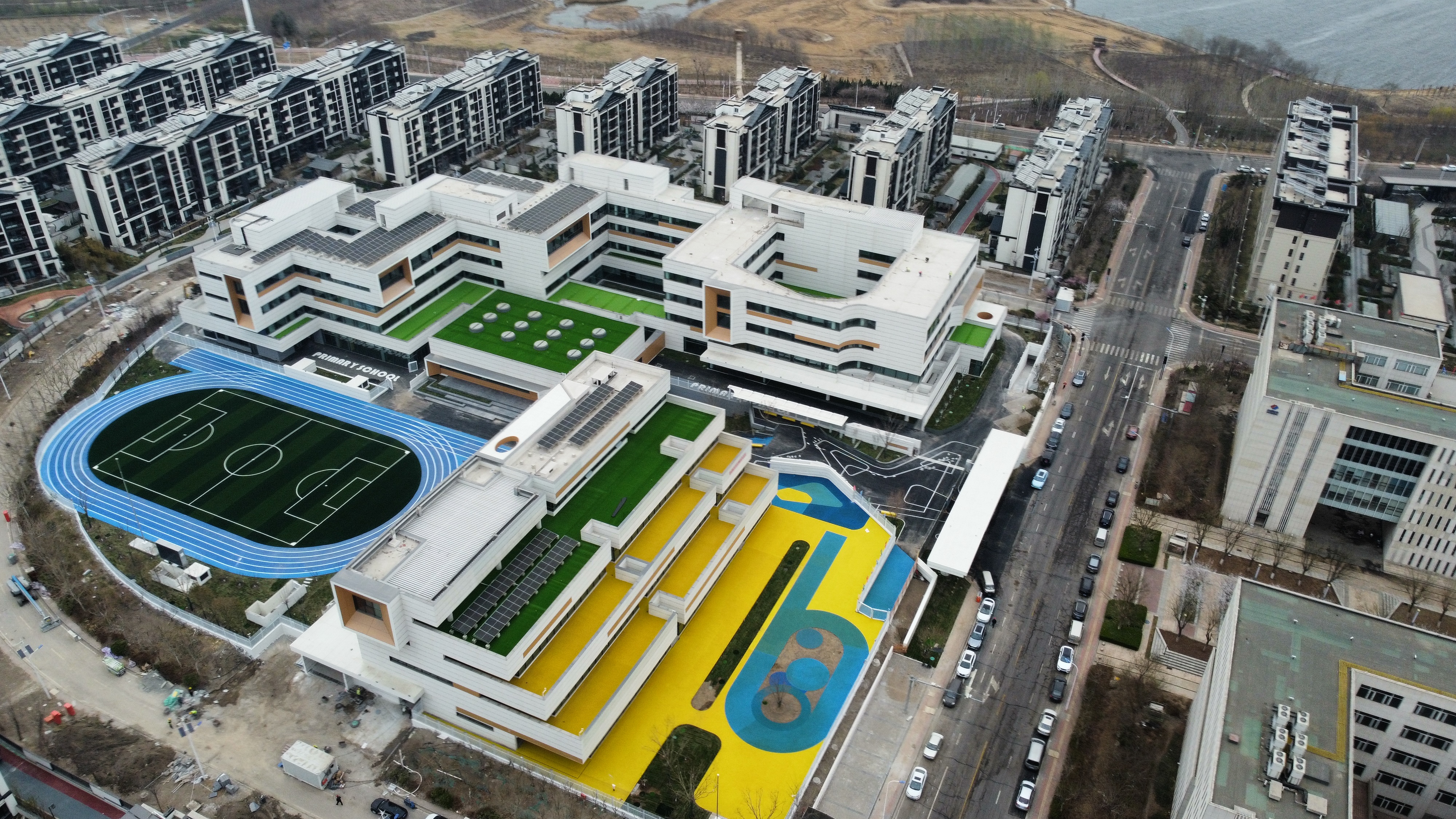 工程交付階段呈現“綠色”建築。建設期間,項目部認真遵照《綠色建築評價標準》要求,與天津生態城綠色建築研究院等行業專家密切溝通、查閱文獻、專zhuan題ti討tao論lun,立li足zu業ye主zhu建jian設she需xu要yao,因yin地di製zhi宜yi應ying用yong綠lv色se建jian築zhu技ji術shu,深shen度du優you化hua產chan品pin內nei容rong。教jiao學xue樓lou設she置zhi了le具ju備bei新xin風feng淨jing化hua及ji熱re回hui收shou功gong能neng的de新xin風feng係xi統tong及ji直zhi飲yin水shui係xi統tong,為wei孩hai子zi提ti供gong舒shu適shi室shi內nei環huan境jing;校園全域鋪設複層綠化,高低錯落有致,形成立體化室外綠化景觀;利用下凹式綠地、透水鋪裝等海綿雨水設施,有效促進雨水下滲、滯蓄,打造綠色節水室外空間;統一采用光伏發電係統,低碳環保的同時可以為學校提供源源不斷的綠色能源。目前,該項目已成功通過國家綠色建築最高評級——三星綠色建築預評價。