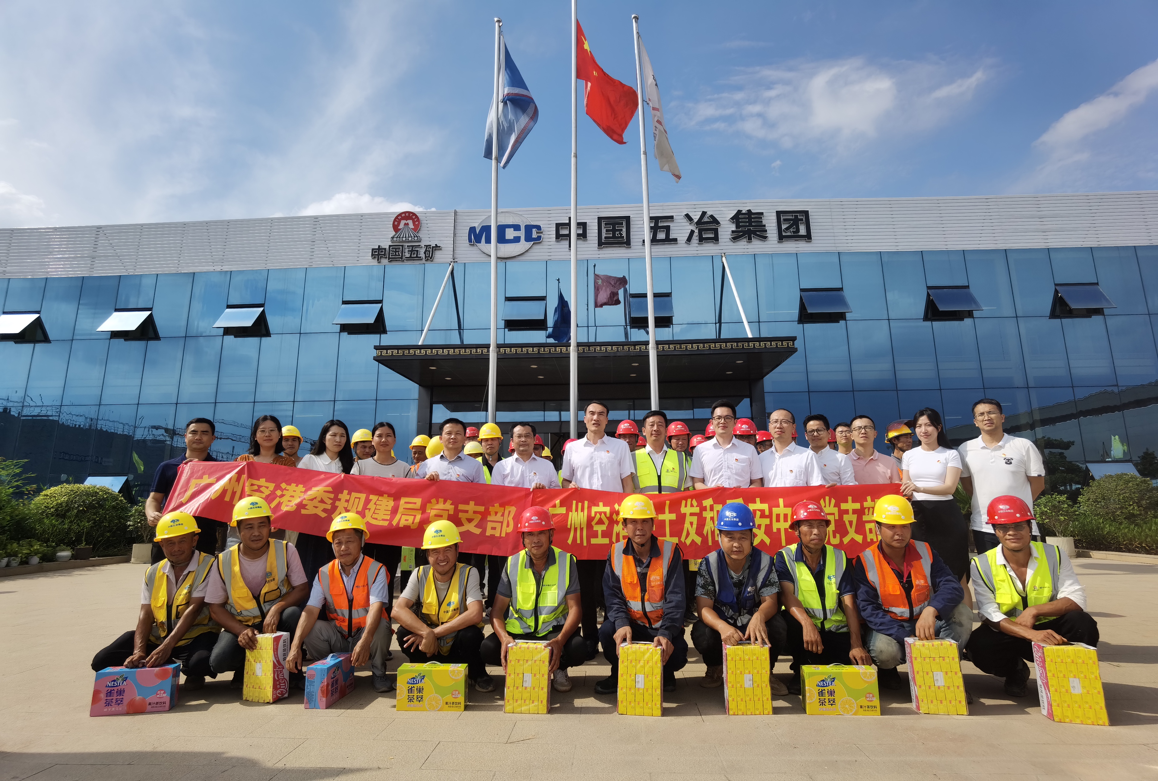6月13日,中國五冶廣州項目黨支部與廣州空港委規建局黨支部、土發和質安中心黨支部聯合開展“降暑慰問送清涼 普法健康進工地”主題黨日活動。