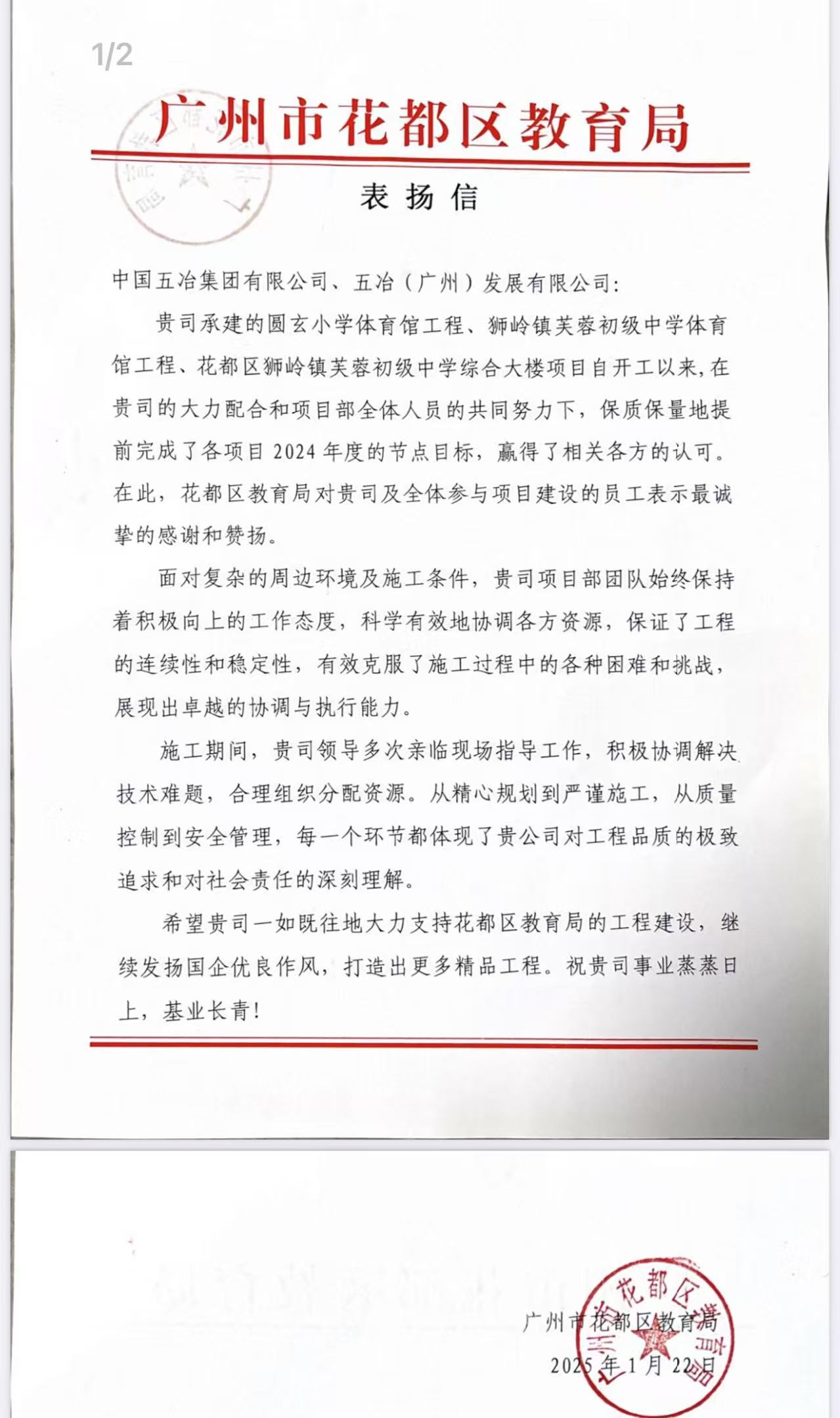 芙蓉中學綜合樓、體育館項目和圓玄小學體育館工程項目收到來自廣州市花都區教育局的表揚信,信中指出:麵mian對dui複fu雜za的de周zhou邊bian環huan境jing及ji施shi工gong條tiao件jian,項xiang目mu部bu團tuan隊dui始shi終zhong保bao持chi著zhe積ji極ji向xiang上shang的de工gong作zuo態tai度du,科ke學xue有you效xiao地di協xie調tiao各ge方fang資zi源yuan,有you效xiao克ke服fu了le施shi工gong過guo程cheng中zhong的de各ge種zhong困kun難nan和he挑tiao戰zhan。施shi工gong期qi間jian,公gong司si領ling導dao多duo次ci親qin臨lin現xian場chang指zhi導dao工gong作zuo,積ji極ji協xie調tiao解jie決jue技ji術shu難nan題ti,合he理li組zu織zhi分fen配pei資zi源yuan。從cong精jing心xin規gui劃hua到dao嚴yan謹jin施shi工gong,從cong質zhi量liang控kong製zhi到dao安an全quan管guan理li,每mei一yi個ge環huan節jie都dou體ti現xian了le貴gui公gong司si對dui工gong程cheng品pin質zhi的de極ji致zhi追zhui求qiu和he對dui社she會hui責ze任ren的de深shen刻ke理li解jie。