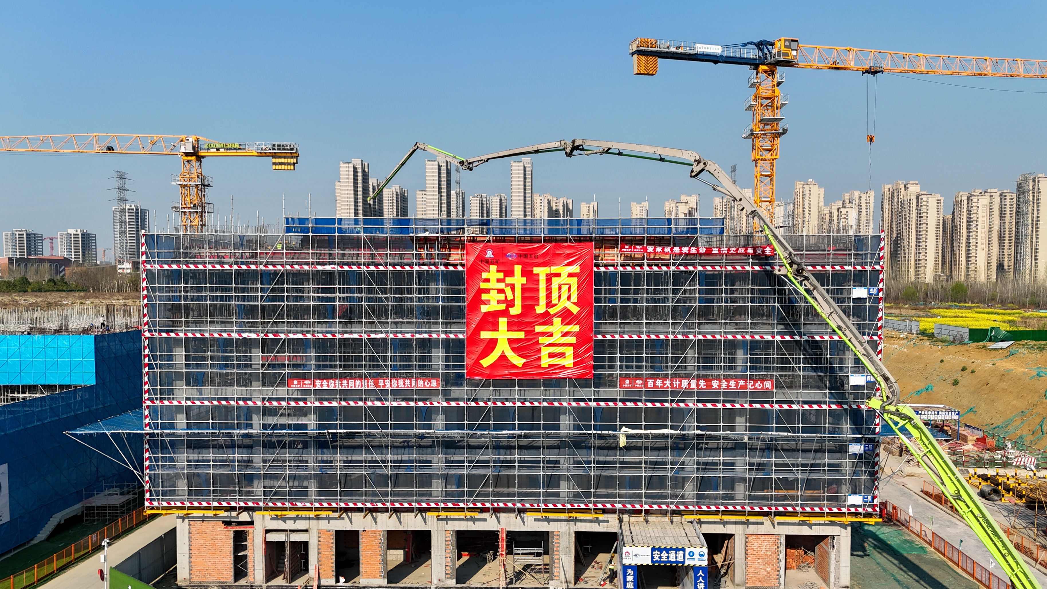 自項目開工以來,項目團隊始終以決戰決勝姿態,抓實精細化管理,通過智慧工地係統實時監測現場動態,建立“三級質檢”機製,層層把關工程質量,全方位打造高品質現場。此前,項目順利完成樁基施工、基礎施工,實現地下室主體結構封頂,為項目主體結構全麵封頂奠定堅實基礎。經過精心策劃、統籌推進,項目團隊高效完成了鋼筋加工綁紮、模板支設及混凝土澆築等作業任務,提前完成主體結構封頂。
