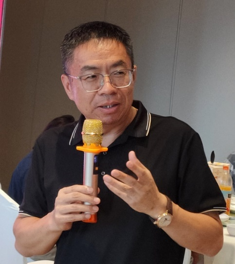 圖為河南威猛振動設備股份有限公司總經理、中國重型機械工業協會振動機械分會理事長王思民在會上與代表們交談。(夏傑生 攝)